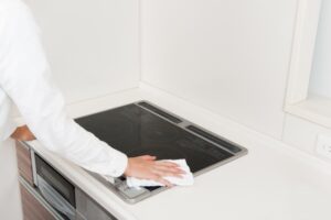 ガス使用時のようにコゲがこびりついて取れないといった心配がなく、さっと拭き取れ掃除が楽チンです。