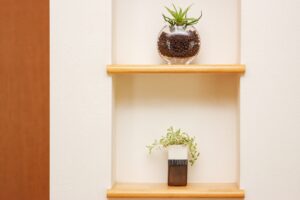 ・雑貨等を飾るためにたくさんニッチを造ったのですが、思っていたよりホコリが溜まる…。