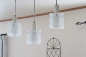 照明の位置決めは、部屋のどこで何をするかで考えます。例えばリビングの場合なら、部屋の中心に主照明をひとつ設けます。それ以外に、食事を楽しむダイニングテーブルと、本を読むソファに補助照明を設けるといいです。このようにひとつの部屋に複数の照明があることで陰影と奥行き感がうまれ、深みのある空間を演出できます。