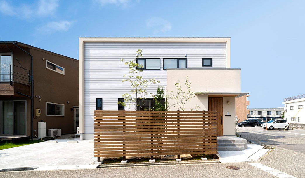 ・塗り壁とガルバリウムの箱型デザイン